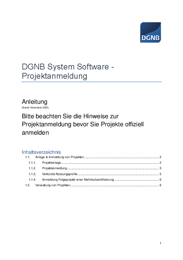 Nevertheless, these schemes are available in the DGNB System Software – as so-called "short profiles". This allows us to facilitate data transfer and communication.