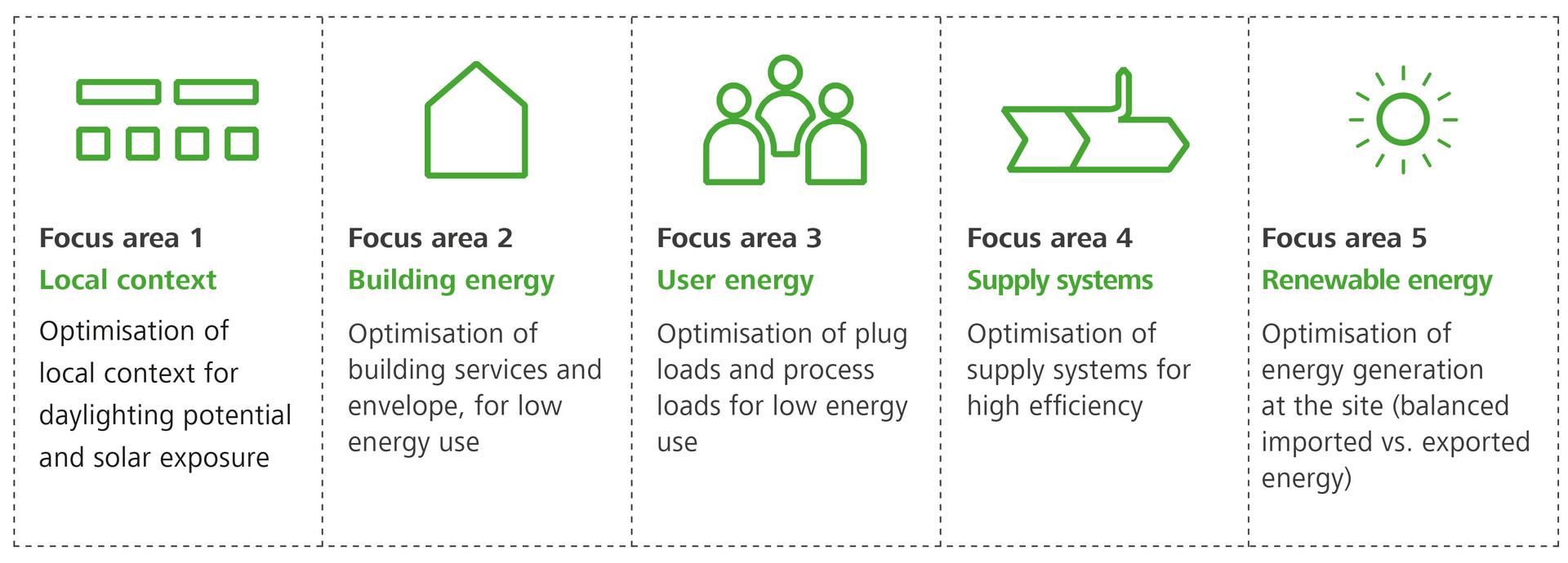 In order to make our buildings carbon neutral, we have to take into account the overarching interrelationships. What we need is a sensible systematic approach. Every decision and measure must be assessed according to the following aspects
